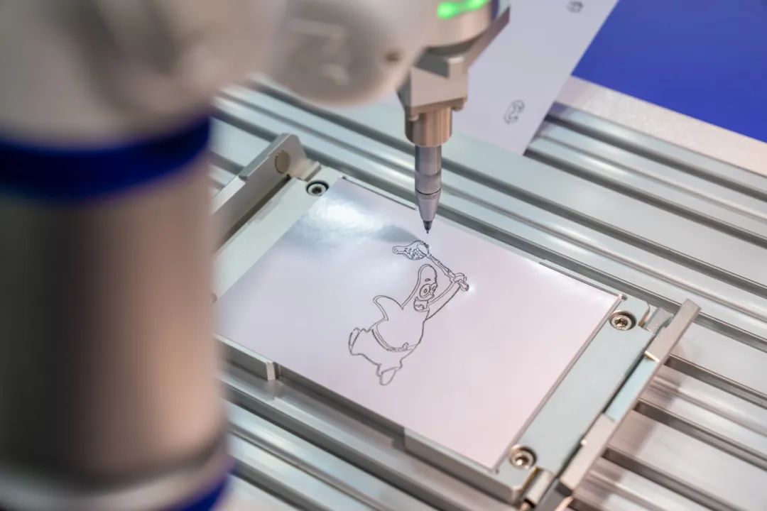 针对AI课程教学、人机互动表演等教育行业场景,milan.米兰中国绘画机器人搭配摄像头及上位机,可拍摄图像并将其轮廓转换为机器人轨迹数据,通过SDK接口向机器人发送。机器人对接收到的轨迹数据进行实时样条插补,解决上位机轨迹数据不连续、通信延迟不可控的问题后,平稳柔顺地完成绘画动作。