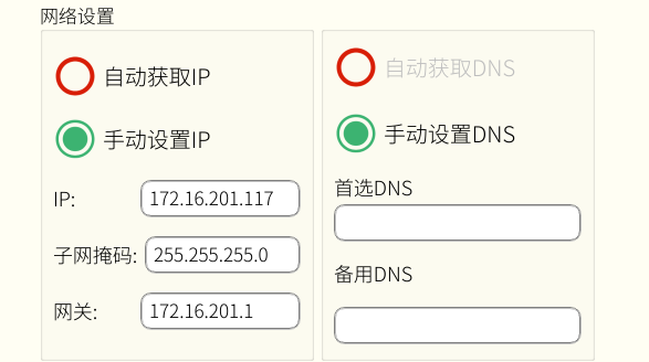 点击系统--系统配置---网络配置---输入IP 子网掩码 以及网关----输入完成后点击设置