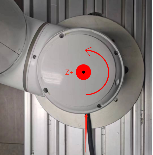 旋转角度指的是机器人线缆出线的方向向下时为0度,如果线缆方向不是向下时,那么线缆的朝向与0度时的夹角为γ(范围0-360度),夹角方向如下图所示。