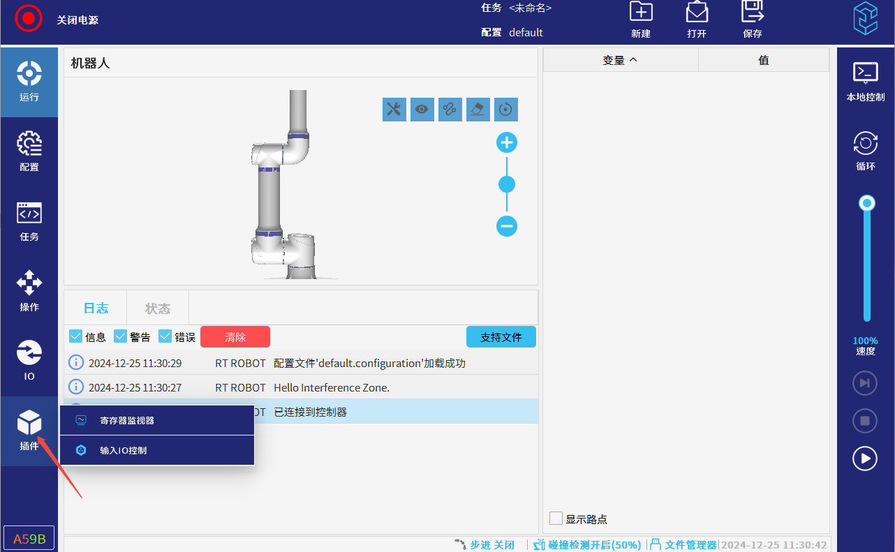 把插件放在U盘插入示教器U盘接口,点击右上角ELITE图标,再点击设置(需要的相应插件请联系ELITE技术人员)