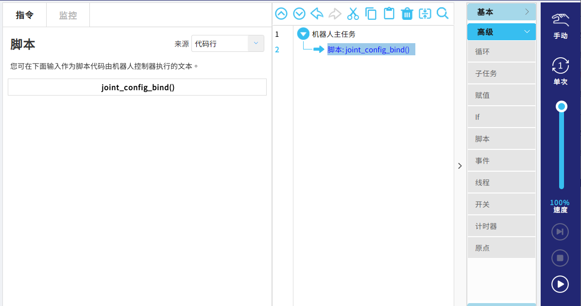 4.在完成上述内容后,同时得到了合适的抑制参数时,需要执行脚本joint_config_bind()进行数据保存,如图4-2所示。