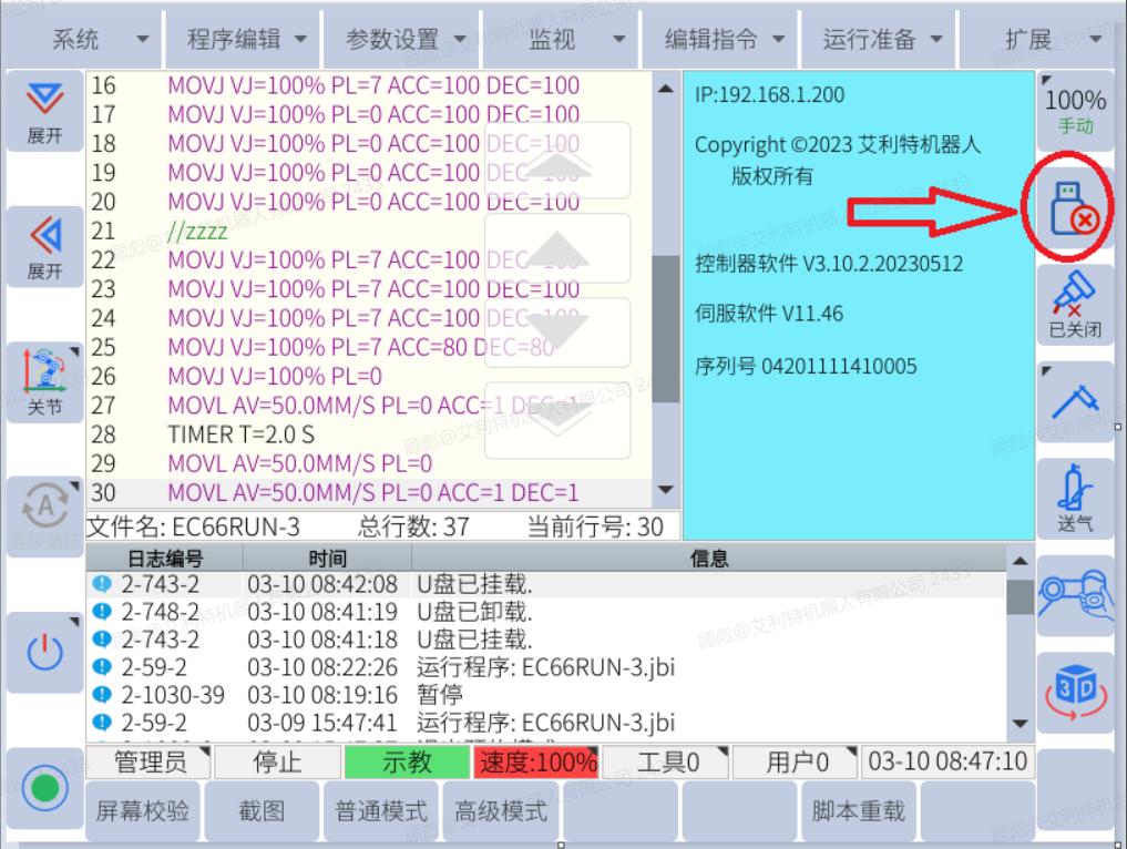1、 示校器程序运行过程的后台数据;包括在示教器上按了哪个按键,光标选中了哪一段程序。