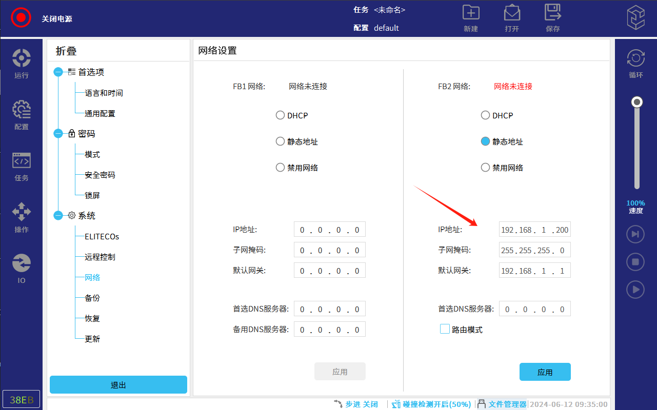 设置机器人网口IP