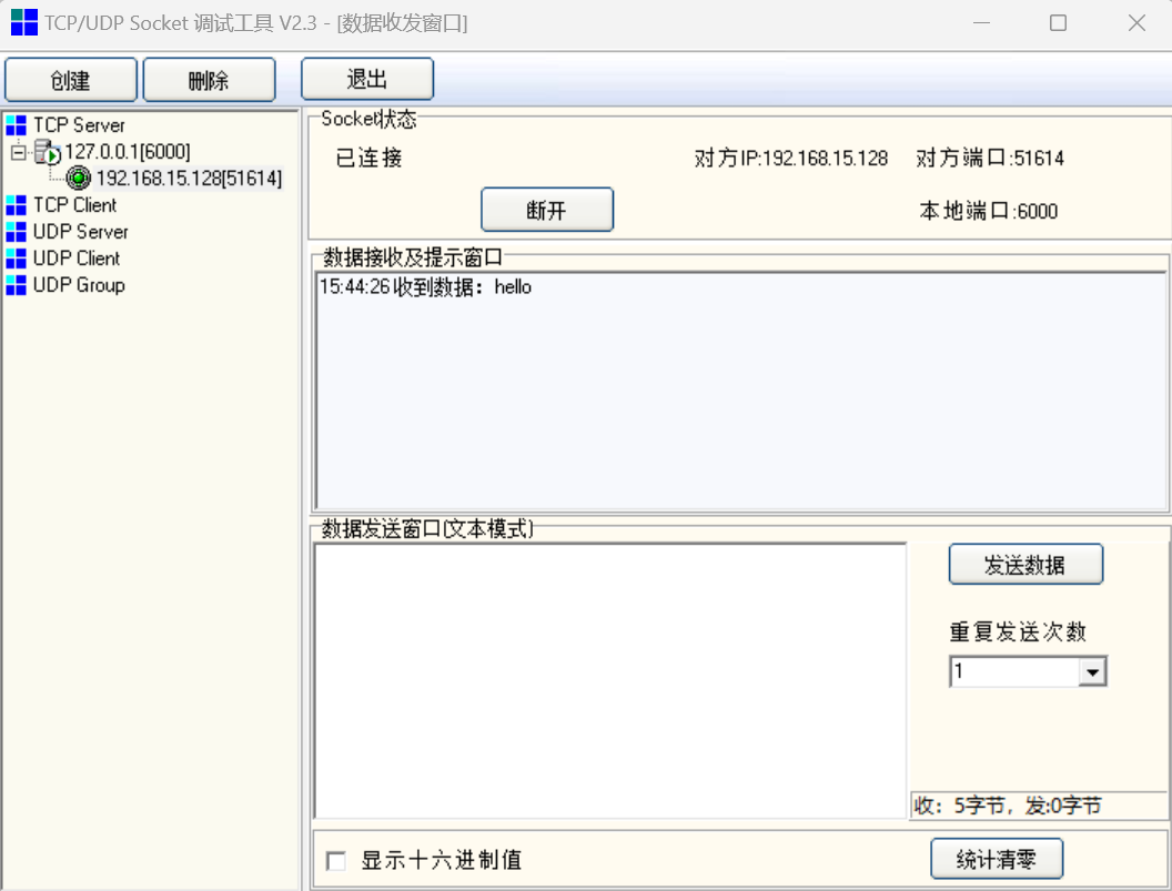 3. 本机 SocketTool ,创建一个服务器,端口6000。
