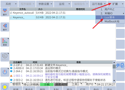 ● 脚本导入后,就可以配置脚本进行使用;扩展(用户工艺)->LUA脚本